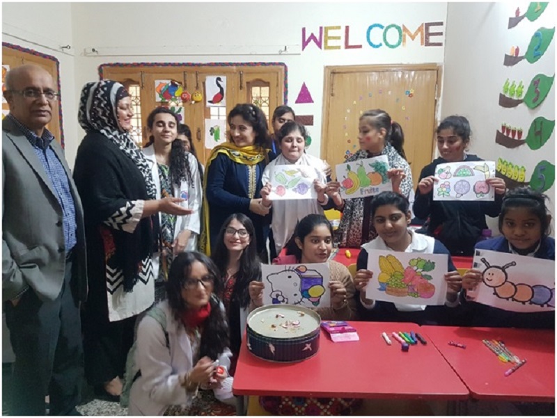 On Wednesday December 04 2019, students of the Community Health Sciences clerkship class of 2021 in wake of International Day of Differently Able Persons 2019 visited the “Care For Special Persons Foundation”, a private school run by an NGO. HOD ComHS, Prof. Dr Zahid Naeem and Associate Professor Dr Sajida Naeem along with Dr Saima Rafi and Dr Mansoor Ahmed Qazi accompanied 24 medical students, who interacted with the special persons in a special manner in the environment of their school. They engaged them in different entertaining activities including face painting, drawing and coloring, nail painting, board games, playdough and music. Our students distributed snacks to the children which included Olpers milk and Milo. Students also magnanimously donated Rs.15000 as a kind gesture. Medical students were served refreshments afterwards by the school administration. Children with special needs thoroughly enjoyed the medical students visit, everyone said goodbye with on smile on their delightful faces.