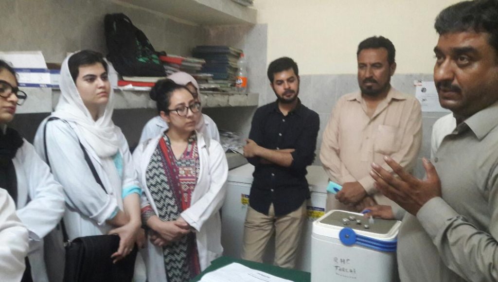 Students of 4th year MBBS, Community & Family Medicine Department visited Rural Health Center (RHC) Tarlai on Wednesday 15 August 2018 under supervision of Dr Umme Kulsoom Khattak. This was the 5th batch of class 2019 completing their rotation of visits to a Primary Health Care setting. The students learned the working of outpatient clinics, Pharmacy, TB DOTS program, laboratory, Fumigation room for malaria & Dengue control and Expanded program of Immunization in a government setup.
