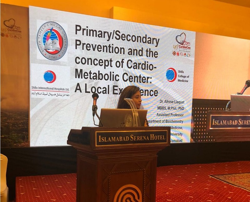 Department of Biochemistry, Shifa College of Medicine lead by Dr. Afrose Liaquat, in collaboration with Department of Cardiology, Shifa International Hospital, participated in the 49th Annual CardioCon, 22nd – 24th November, 2019 at Serena Hotel, Islamabad. Dr. Afrose Liaquat presented a comprehensive talk on “Primary/secondary prevention and the concept of Cardiometabolic Center: A local Experience”.