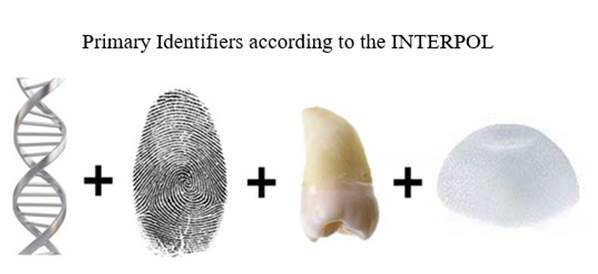 study and practice encompasses the basic dental science, the changes and traumatic injuries on teeth (including the surrounding tissues) during and after life, the changes on objects when subjected to the dental force and also investigation into fraud or dentolegal cases involving the practising dental surgeons. Dental identification is one of the primary identifiers as per the INTERPOL guidelines for the identification of unknown individuals. Forensic dentists may also be asked to assist in determining age, race, occupation, previous dental history and socioeconomic status of unidentified human beings. They play an integral part in the identification and age estimation during mass disasters such as earthquake, tsunamis and aviation disasters. Forensic Odontologist can also assist in the bite mark analysis during criminal investigations.