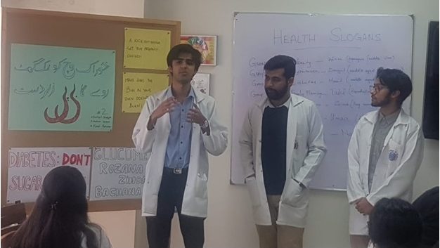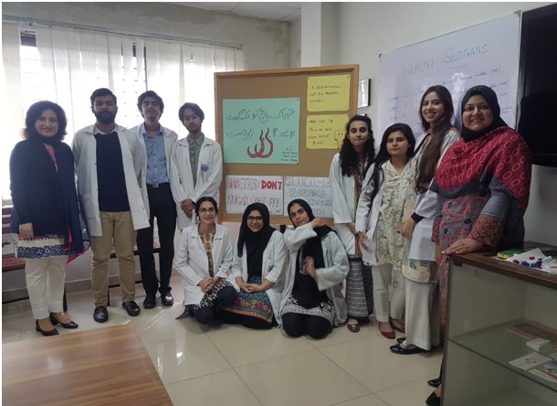 Twenty-four students of Year 4 clerkship group were assigned the task to develop health slogans / messages in groups on the curriculum themes of ComHS to be delivered in 8 weeks clerkship. These themes are: Obesity, Family planning, Healthy eating (My plate), Hypertension, Diabetes Mellitus, Pollution (Environmental Health) & Child Health. The students were asked to select their target population and develop a health message for them. The purpose of this activity was to make the clerkship students cognizant with the current health issues and learn to develop health slogans that may be utilized for creating health awareness among general population. Each group presented the message developed by them and discussed their strategy to deliver the message across the audience using different means which included role playing, counselling session, social networking sites, conducting radio shows and advertisements as their mediums. Through this activity students realized the importance and need for effective health communication in order to address the abovementioned health problems.