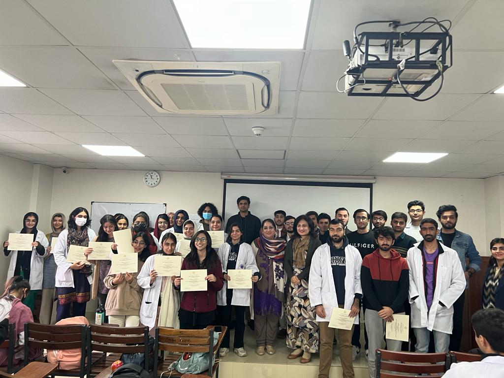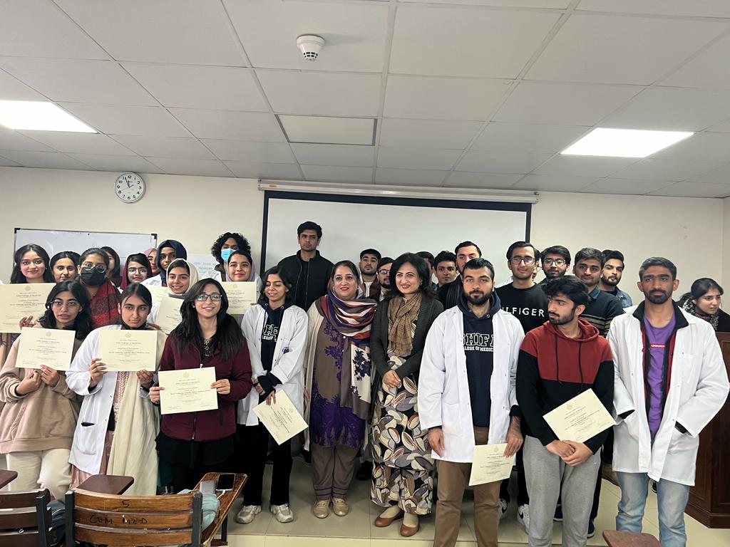 Educational leadership is a key component in training of the finest healthcare professionals as health care organizations and medical schools need competent and effective leaders to face the challenges of the modern world. Shifa College of Medicine has been implementing various sessions and workshops to develop and enhance the leadership skills of their undergraduate students to prepare them as competent leaders to enhance workplace productivity and improvement in the healthcare delivery system. In this regard on December 20, 2023, Department of Health Professions Education in collaboration with Community Medicine organized a workshop on “Medical Leadership Competency Framework” to promote the idea that medical graduates need to become more actively involved in the planning, delivery and transformation of health services through a shared leadership approach