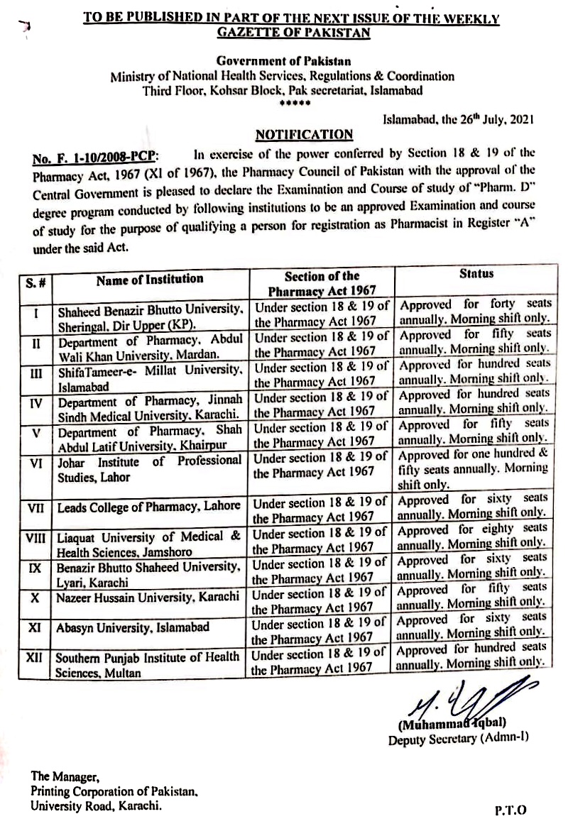 Gazette Notification (Govt. of Pakistan) [Download]
