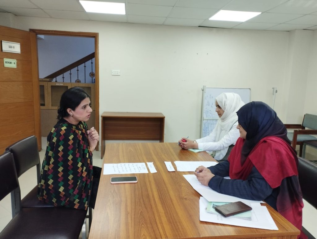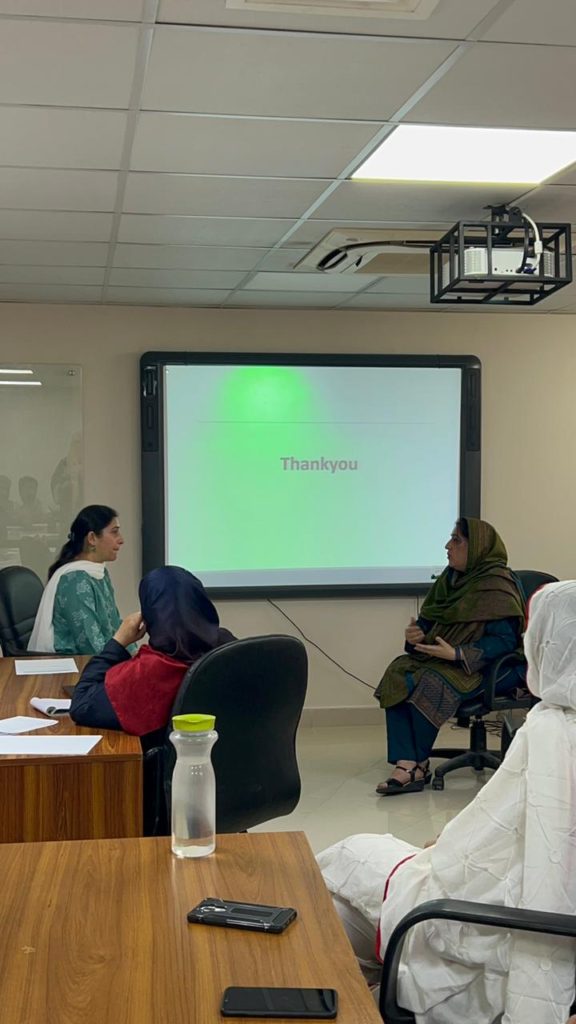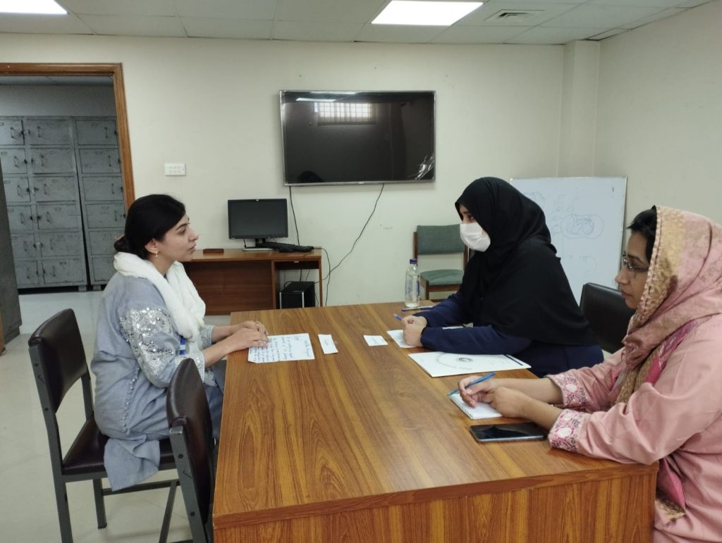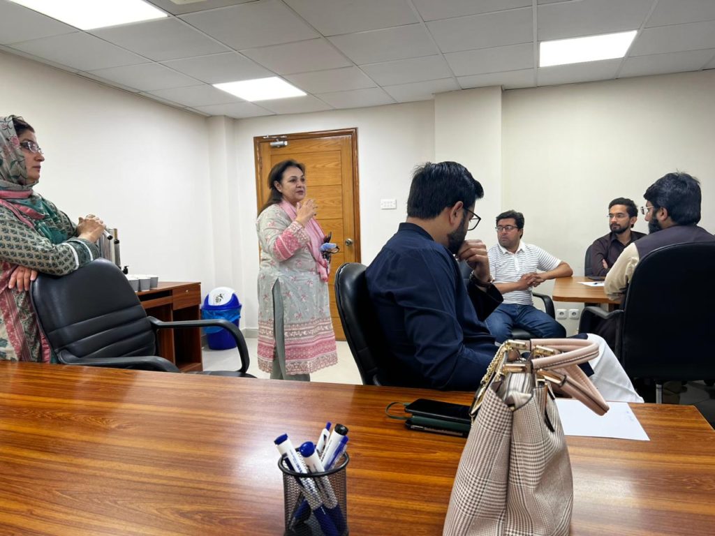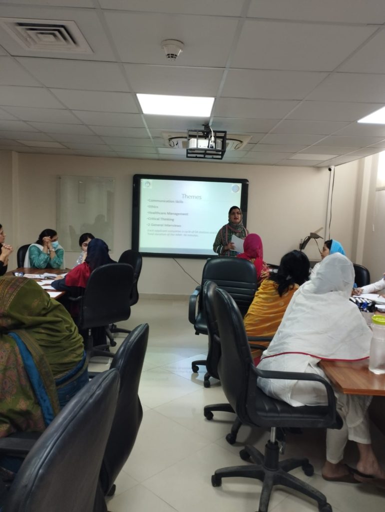 The Department of Health Professions Education, Shifa College of Medicine, arranged a training workshop on Multiple Mini Interviews (MMIs) for the Faculty of Pharmaceutical sciences, Shifa Tameer-e-Millat University, on Friday, October 14, 2022, from 9:00 to 12:00 Hrs, at Conference Room, Shifa College of Medicine. Dr Muneeza Aamir Sami facilitated the session along with Prof Dr Riffat Shafi, Dr Shazia Irum, Dr Hareem and Dr Mahrukh Durrani. She briefed the participants about the basic format and purpose of MMIs in assessing non-cognitive domains and selecting the candidates with the right aptitude for medical school. This was followed by a role play by Dr Hareem and Dr Mahrukh.