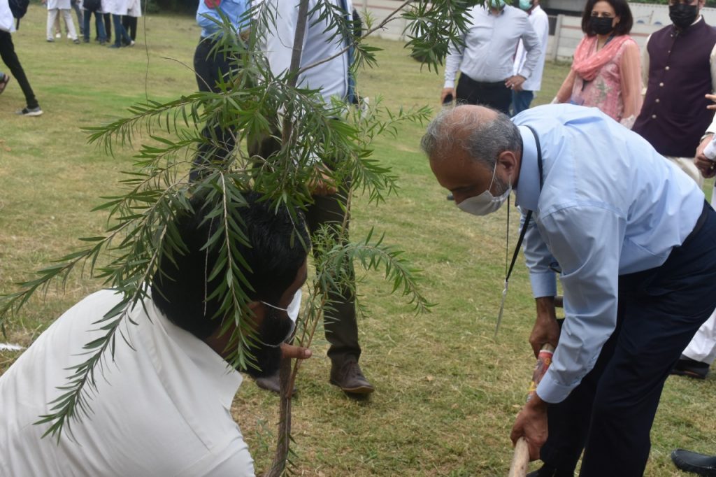 Vice Chancellor Prof. Dr. Muhammad Iqbal Khan, Dean Health Sciences Prof. Dr. Mohammed Amir, Dean Basic Health Sciences/ HOD Physiology & HPE / Head Horticulture Committee Prof. Dr. Riffat Shafi and faculty received the guests. Dr. Sajida Naseem Associate Professor of Community Medicine was the organizer and host of the tree plantation ceremony. Both the guests emphasized the need for tree plantation and appreciated the efforts of Medical Professionals of SCM in supporting this environment-friendly activity. Different types of saplings were planted which included fruit, floral and other trees that provide shade. These were planted in and around the SCM campus. Faculty, staff and students participated in this activity.