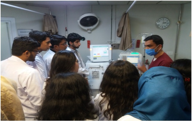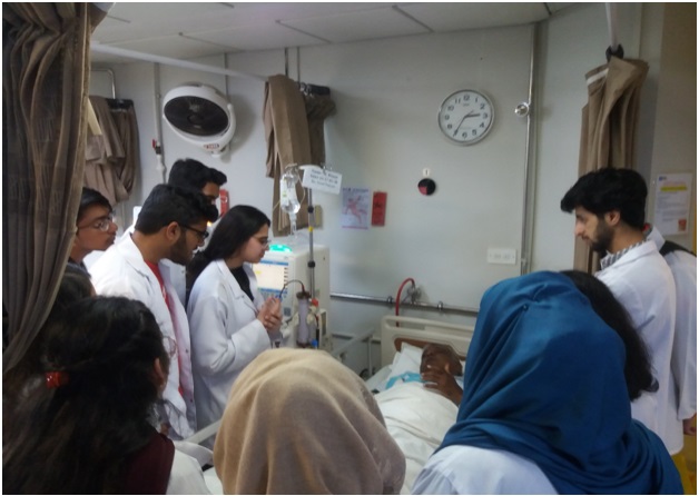 During the visit students were briefed by Medical officer regarding the working of the Dialysis unit along with all the processes involved. Students interacted with the patients in order to know about current status of kidney problems and also enquired about the past medical history. Medical students appreciated the knowledge they received at the Dialysis Unit.