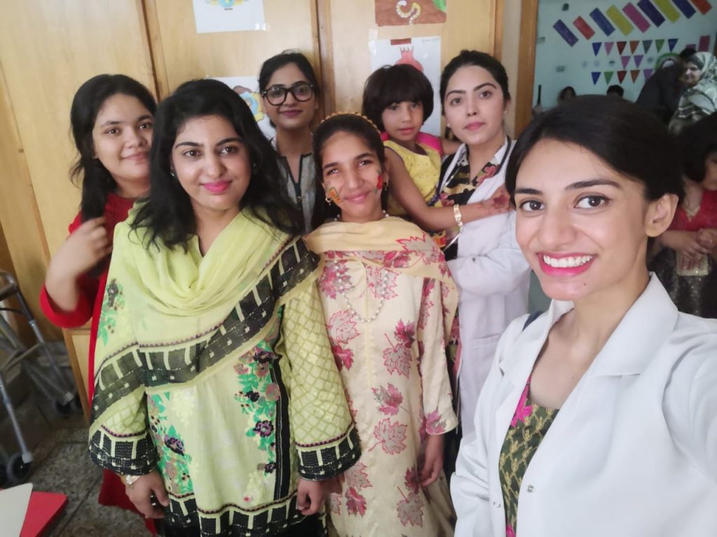 Clerkship batch of year 4 students attending Community & Family Medicine visited the “Care For Special Persons Foundation” School of special children for 3 hours on Thursday Sept 06, 2018 accompanied by Dr Sajida Naseem.  Medical students interacted with the 40 school children,recorded their height and weight and entertained them with their multitasking skills n small eatery. Both the school children as well as undergraduate students found this mutually benefitting.