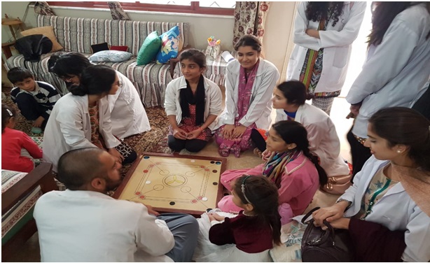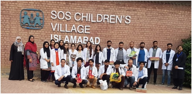 Students of Year 4 class of 2021 attending the clerkship of Community Health Sciences visited SOS Children’s Village on Nov 14, 2019. This educational trip was supervised by Dr. Saima Rafi and Dr. Mansoor Ahmed Qazi. Our medical students were first given orientation about SOS Village and the project through a video. After this, Year 4 students visited family homes, interacted with the mothers and their children. They played different games with them including cricket and board games. They engaged the village children in different entertaining activities, to an extent that medical students did not want to wind up the activity and return to college. Danish Shafqat, our clerkship student entertained the village children by dressed up in an inflatable suit to incite curiosity and excitement They also said we would like to visit these children again as part of educational activity and or on their own. The medical students generously donated Rs 36,000 for the village children. They also distributed snacks, chocolates, milk and juices. Our students appreciated the way homes were being managed and children were treated with love and respect. The main objective of the visit was to develop empathy and spend quality time with the SOS children.