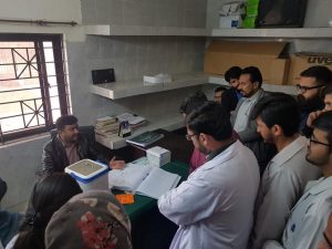 Students of year 4 class 2020 attending the clerkship of community and family medicine visited RHC Tarlai on 11th January 2019, under the supervision of Dr Umme Kulsoom Khattak along with Dr Saima and Dr Tahira. The Objective of this visit was to demonstrate the students about how RHCs are providing primary care services to the patients in rural communities. A brief introduction was given about the facilities being provided at the center including outpatient department services, vaccination against ten target diseases, mother & child health care services, free provision of medicines, laboratory services, TB DOTS program, malaria & dengue prevention, polio eradication campaigns and community oriented lady health worker (LHW) program.